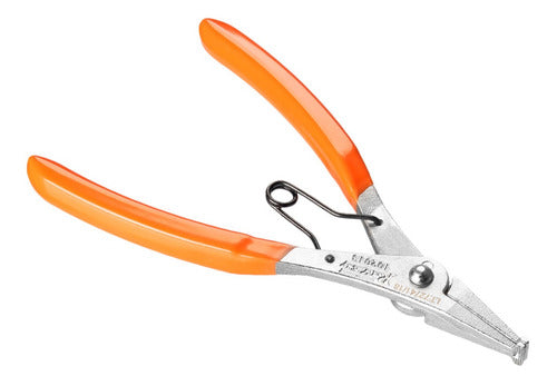 Alicate indicado para anéis trava (de vários tipos) encontrados principalmente em caixas de transmissão de veículos leves, utilitários e pesados. Alicate para anéis trava Feito em matérial resistente Peso: 0,24Kg Modelo Raven 102013
