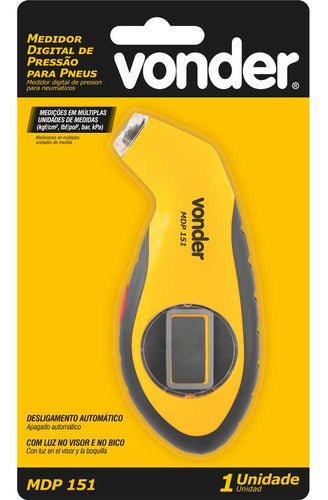 Garanta a segurança e a eficiência do seu veículo com o Medidor Calibrador Digital De Pressão Para Pneus MDP151 - Vonder! Uma escolha inteligente para quem não abre mão da qualidade e da precisão na manutenção de pneus.