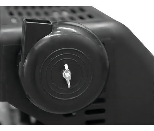 Motocompressor de ar compacto e portátil, com potência de 2 cv (hp). Equipado com chave liga/desliga, rodas e alça para facilitar o manuseio e transporte. Possui dois dispositivos de segurança que desligam o motor em caso de sobrecarga ou superaquecimento. Oferece dupla proteção térmica, carcaça em plástico com proteção antichama, capacitor blindado, regulador de pressão, válvula de segurança, roda de borracha com proteção antichama, alça reforçada, dois manômetros e duas válvulas de saída. Conta com um reservatório de 50 L.
