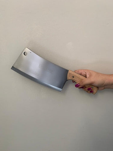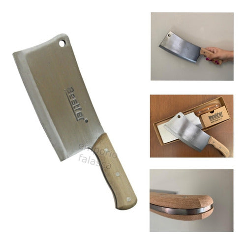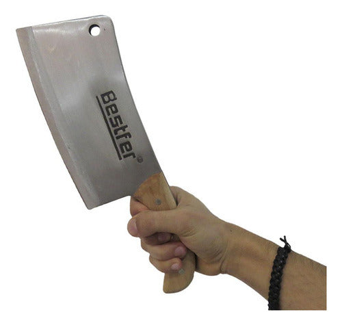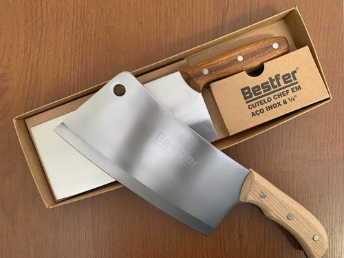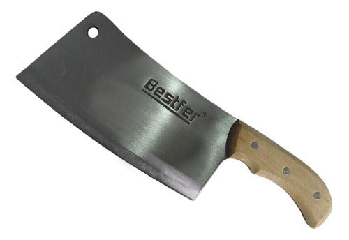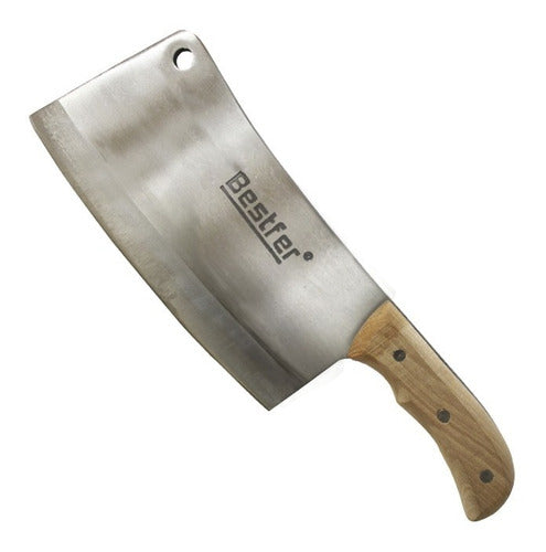Cutelo Tipo Artesanal Aço Manganês 8,5 Pol Full Tang Bestfer Este cutelo artesanal com furo em aço manganês é perfeito para sua cozinha e churrasco. Com 8,5 polegadas (21,5 cm) e lâmina com espessura de 6,5mm, este cutelo é durável, afiado e resistente ao desgaste. Possui um excelente acabamento e um aspecto robusto, que conferem resistência e qualidade ao cutelo. Características: -medida: 8,5 polegadas (21,5 cm). -espessura: 6,5mm. -tratamento térmico. -com furo na lâmina. -corpo em aço manganês. -cabo em madeira. -excelente acabamento. -alta resistência e qualidade. Conteúdo: -1 Cutelo com furo. -1 Case plástico. Aplicação:ideal para cortar ou quebrar ossos de suínos, aves, peixes e alimentos congelados. Código:bfh1762'.