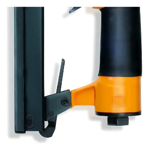 Grampeador pneumático tipo PCW para uso profissional em linha de montagem, montagem de armários, caixas, móveis e muito mais. Corpo desenvolvido em alumínio, desenho compacto e com cabo ergonômico e emborrachado o grampeador pneumático realiza trabalhos contínuos de forma que não exija muitos esforços do operador.