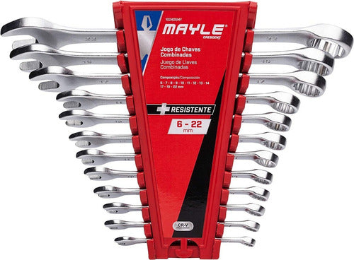 Marca: Mayle Referência: 102904MY • DescriçãoJogo de Chave Combinada 1.4 a 1.1.4 Pol. com 16 Peças Mayle Características da Ferramenta Forjadas em aço cromo vanádio com acabamento cromado. De um lado possui boca e do outro estrela com as mesmas medidas. Logotipo e medidas estampadas em alto relevo facilitando a identificação da ferramenta. Utiliza o princípio da alavanca para apertar ou desapertar parafusos e porcas com perfil sextavado. "Imagem Meramente Ilustrativa" Dados Técnicos Composição: 1/4", 5/16", 3/8", 7/16", 1/2", 9/16", 5/8", 11/16", 3/4", 13/16", 7/8", 15/16", 1", 1.1/16", 1.1/8" e 1.1/4" Peso: 3,20 Kg Acompanha 1un. Jogo de Chave Combinada 1.4 a 1.1.4 Pol. com 16 Peças Mayle Garantia 12 Meses fornecido pelo fabricante. Especificações Modelo: 102904MY