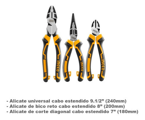 Jogo De Alicates Industriais Com 3 Peças - Ingco