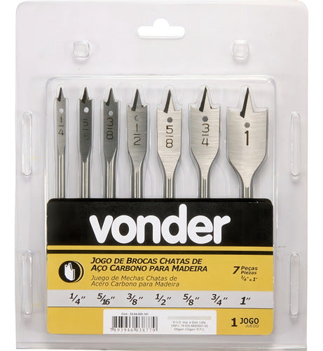 Jogo De Brocas Chatas De 1/4 A 1 Com 7 Peças Vonder