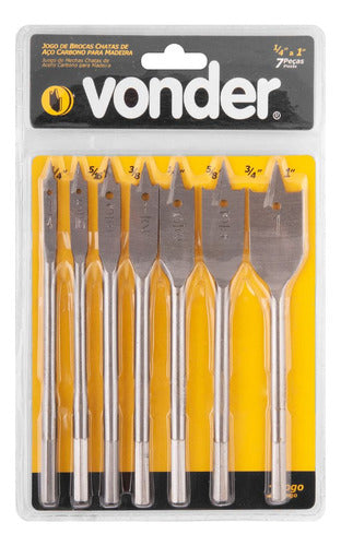 JOGO DE BROCAS CHATAS PARA MADEIRA 7 PEÇAS DE 1/4" A 1" VONDER
