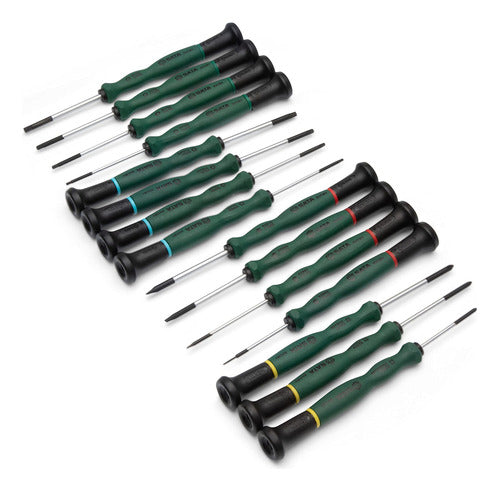 [Conjunto principal] Contém Phillips #000, #00 e #0, fenda 1. 0, 2. 0, 3. 0 e 3. 5, Torex T6, T8, T10 e T15 e hexagonais 1. 5, 2. 0, 2. 5 e 3. 0 tamanhos [Lâminas de aço S2] lâminas de aço S2 dão a essas chaves de fenda profissionais a força para enfrentar qualquer desafio [Alças ergonômicas] As alças verdes moldadas são ergonomicamente moldadas para o máximo conforto durante o trabalho [Chaves de fenda de precisão] ideais para técnicos eletrônicos ou joalheiros que realizam trabalhos de precisão em espaços apertados [Estojo de transporte] A capa de polietileno (PE) é durável, segura e forte o suficiente para transportar, armazenar ou transportar