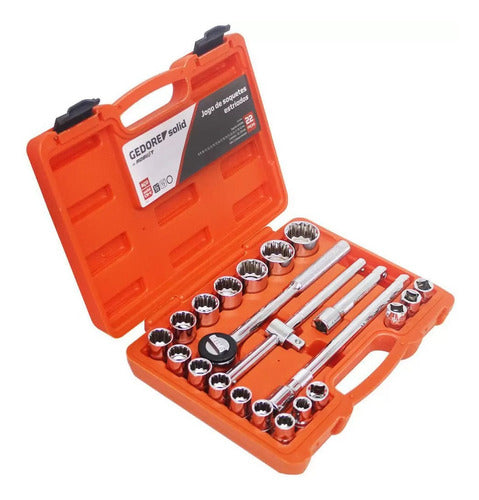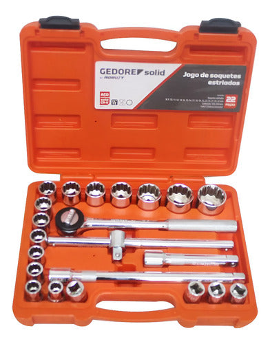Jogo Soquete Estriado 22pçs Cromo Vanádio 1/2 Robust Gedore Laranja