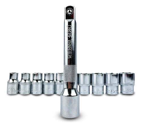 Jogo Soquete Sextavado Catraca Extensor 1/2 Crv 12 Peças