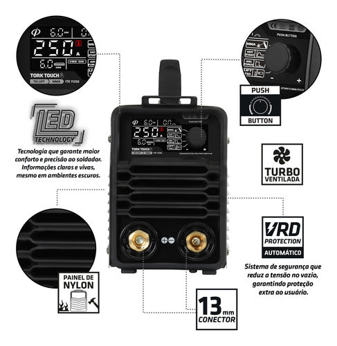 MAQUINA DE SOLDA INVERSORA TIG MMA TOUCH 250 AMP VRD TORK