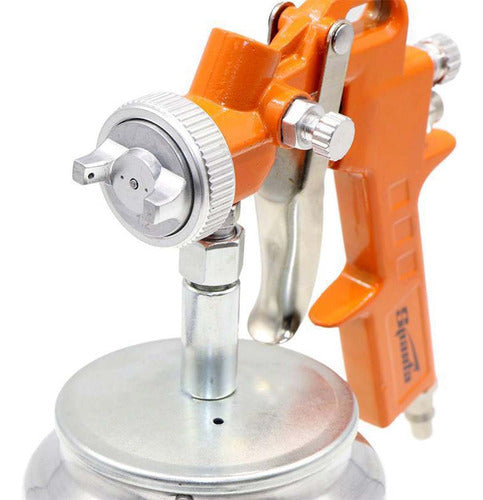 Pistola de pintura com alimentação por sucção, ideal para trabalhos que exigem precisão e acabamento profissional. Projetada para uso com compressores de ar, seu tanque inferior permite maior aproveitamento da tinta e estabilidade durante a aplicação.