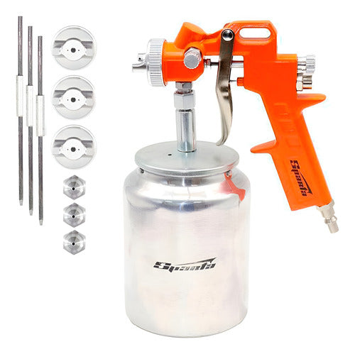 Com encaixe padrão NPT 1/4, é compatível com os principais sistemas pneumáticos do mercado. A pulverização uniforme garante uma cobertura eficaz e sem falhas, tanto em superfícies grandes quanto em detalhes delicados, além de possuir um jogo completo com os bicos de diâmetro de 1,2, 1,5, 1,8 milímetros.